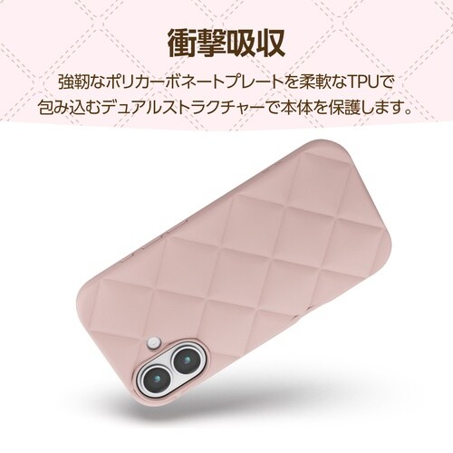 背面には立体感のあるキルティング風デザインを採用し、可愛らしさと上品さを兼ね備えたソフトケースです。 |
