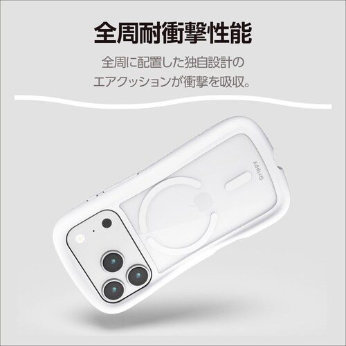 磁力装着タイプのワイヤレス充電器に対応した“MAGKEEP”。全周に配置した独自設計のエアークッションが衝撃を吸収し、背面には高硬度のポリカーボネート素材を採用。 |