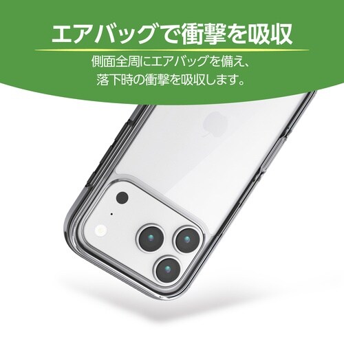 全周に配置した独自設計のエアーバッグが衝撃を吸収する、AirShockシリーズのハイブリッドケースです。 |