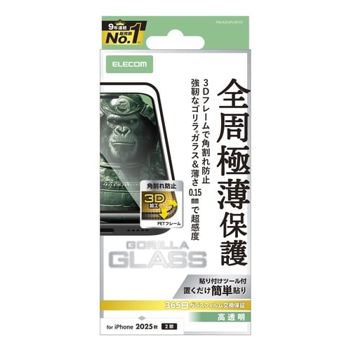 なめらかな指滑りを実現するリアルガラスを採用。Gorilla(R)ガラスを採用し3D設計のPETフレームで角割れを防ぐ、極薄・高透明タイプの画面保護ガラスフィルムです。 |