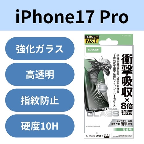 エレコム iPhone 17 Pro ガラスフィルム 高透明 衝撃吸収 10H Dragontrail(R)X A067-6849