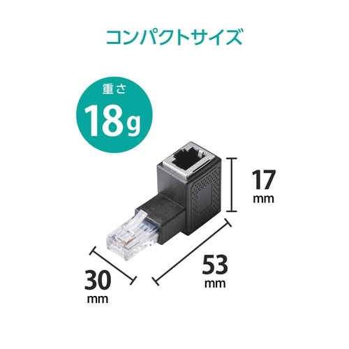 LANケーブル延長コネクタ L字上向き ブラック