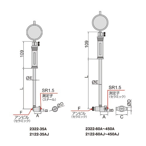 測定範囲:160−250mm | 全測定範囲指示誤差:±0.018mm | 繰り返し精度:0.003mm | 測定子の有効ストローク:1.6 | 単位…