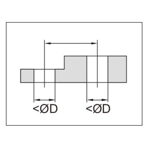 ■穴の中心間の距離測定 ■本体のジョウが上下に可動するので、同じ高さだけでなく、段違い部の測定も可能です。 |