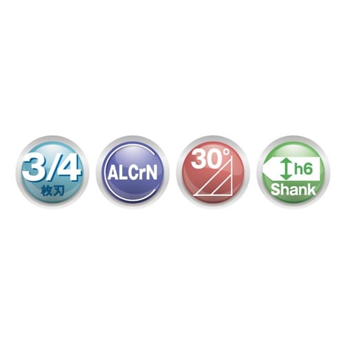 ■多刃ボールエンドミルのため、送り速度を上げることができ高能率加工を実現■ALCrN系コーティングにより、金型鋼はもちろんのこと、ステンレスや難削材にも対応■HRC52の硬さまで加工が可能 |