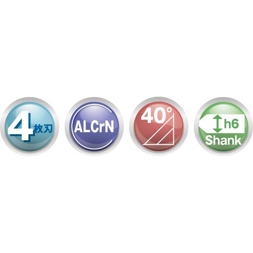 ■4枚刃、40度ねじれのラフィングエンドミル■不等分割および40度ねじれの採用により、静かな切削音■ファインピッチにより低抵抗を実現、加工面の粗さを軽減■適度なコーナー部C面により欠損防止 |