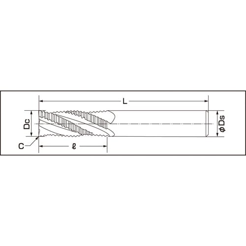 ■4枚刃、40度ねじれのラフィングエンドミル■不等分割および40度ねじれの採用により、静かな切削音■ファインピッチにより低抵抗を実現、加工面の粗さを軽減■適度なコーナー部C面により欠損防止 |