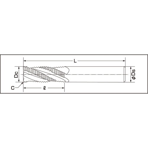 ■4枚刃、40度ねじれのラフィングエンドミル■不等分割および40度ねじれの採用により、静かな切削音■ファインピッチにより低抵抗を実現、加工面の粗さを軽減■適度なコーナー部C面により欠損防止 |
