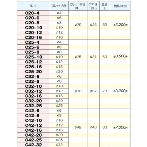 コレット内径:φ4 | コレット外径:φ25 | 単位:1個