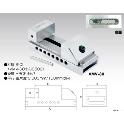 ■ホールドダウン方式のクランプ(浮き上がり防止構造)のため、チャック時にワークの浮き上がりを抑制します。■丸棒のクランプに便利なV溝付移動ジョウ |