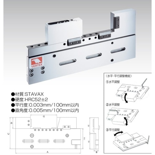■本体に水平、平行調整機能を備えています。■ワークスタンド上にバイスを取り付けた状態で、ワークの基準出しが簡単に行えます。 |