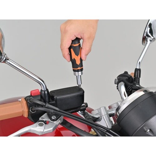 1/4インチラチェットドライバーに六角ソケット6種とビット21種を組み合わせたツールセットです。マイナス、プラス、トルクス、六角、PZビットを揃え、バイク整備からDIYまで幅広く対応します。 |