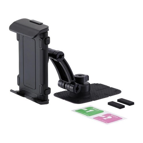 カーブアームでローダウン可能なタブレットホルダー。曲面に貼付けられる強力両面テープ付きで、360°回転調整可能。スマホ(縦置き)から11インチタブレットまで対応し、前方視界を確保します。 |