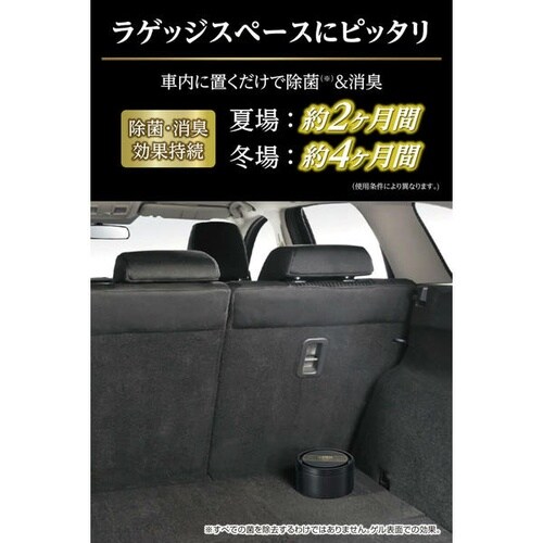 消臭性能400%を実現した無香料タイプ。安定化二酸化塩素で菌・ウイルス・悪臭を強力除去し、大容量置き型で約2ー4ヶ月持続するラゲッジ専用モデルです。 |