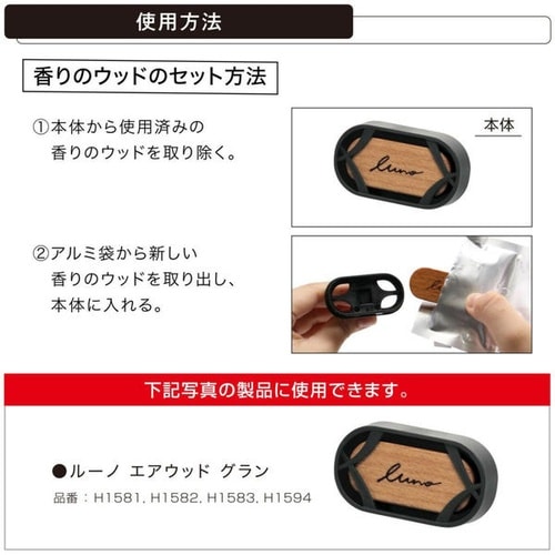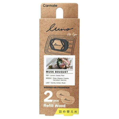 天然木に香料を染み込ませた上質フレグランスです。エアコン風で香り広がるクリップ型で、天然由来消臭剤配合。約30日持続し、カシスやローズを重ねた華やかなムスクブーケが香ります。 |