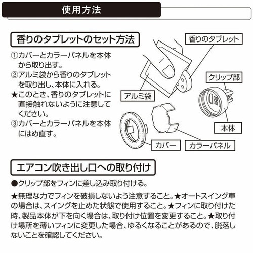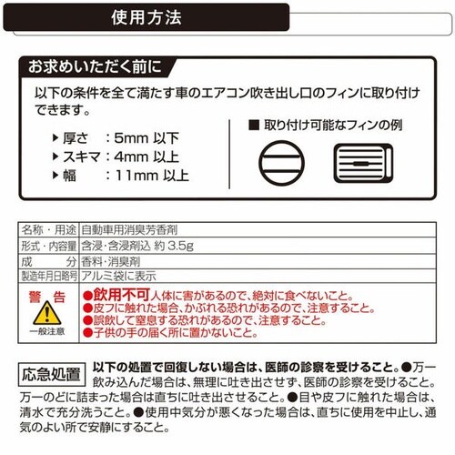 レザー調デザインが車内に馴染むクリップ式芳香剤。詰替え対応で約30日持続し、消臭剤配合で嫌な臭いを抑えます。人気のホワイトムスクはフローラルとフルーツが調和し、上質で心地よい香りが広がります。 |
