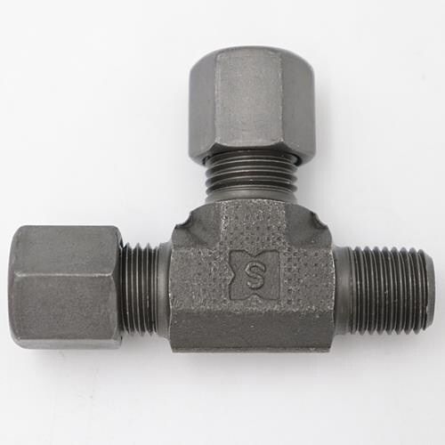 □一般油圧配管用の高圧用継手□ナットの締付により特殊熱処理したスリーブが管にくい込んで接続□接続部のねじ・寸法はJIS準拠□スリーブ:鋼板または炭素鋼を用い、表面硬化処理を施工 |