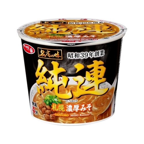 北海道・札幌の人気ラーメン店「純連」の味わいをミニカップで再現した、濃厚な味わいの味噌ラーメンです。 |