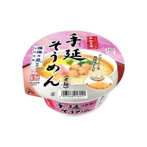 めん:手延素麺「揖保乃糸」を使用し、2次加工したノンフライ麺です。手延素麺ならではのなめらかな舌触りとコシがあって歯切れの良い食感が特長です。 |