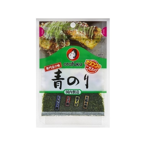 色、風味の良い、国産のすじ青のりを使用しています。すじ状なので、歯につきにくく口どけが良いです。保存に便利なチャック式袋を採用。 |