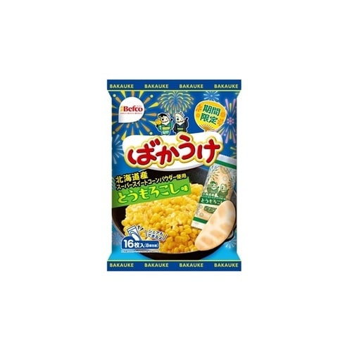 北海道産スーパースイートコーンパウダー使用。茹でたてとうもろこしの優しい甘さが広がるばかうけ。個包装で便利。 |
