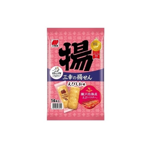 揚げせんの新定番!手が汚れにくいスティック型&個包装。瀬戸内海産えびパウダーで味付け、豊かな風味が広がる。 |