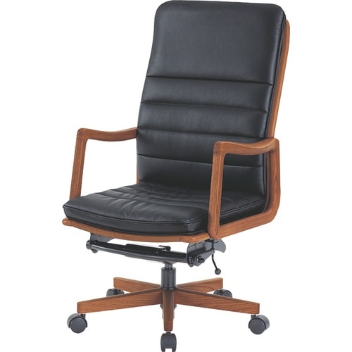 高級感溢れる木製ハイバックチェア。オーク無垢材の滑らかな肘木部。オーク無垢材の高級感ある木製脚。ニーチルトロッキング仕様(座面前方を支点にして後ろに倒す事が出来、脚部を圧迫せず姿勢をサポート) |