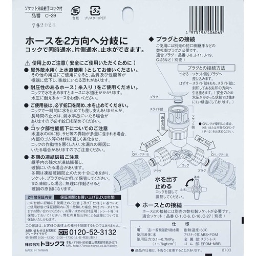 水の流れを2方向に分水できます。 |