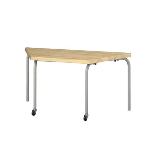 スタックして収納ができる木製パイン台形天板のテーブルです。