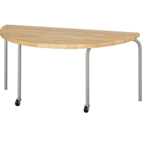 スタックして収納ができる木製パイン半円形天板のテーブルです。