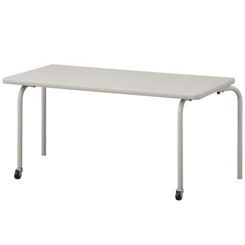 スタックして収納ができるグレー色長方形天板のテーブルです。 |