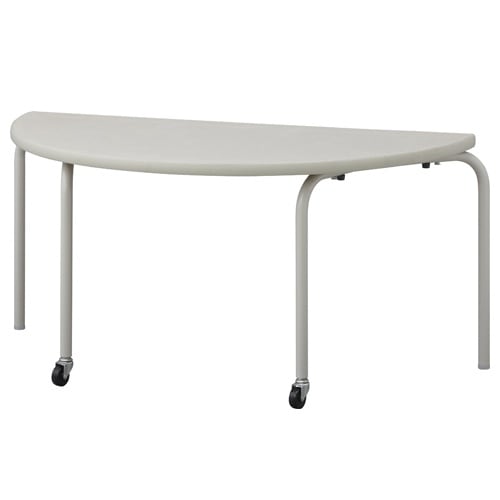 スタックして収納ができるグレー色半円形天板のテーブルです。 |
