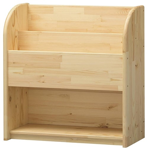 天然木を使用した60cm幅の絵本棚(大)です。エッジ部は全て角を丸く仕上げておりますので、お子様にも安心してお使い頂けます。 |