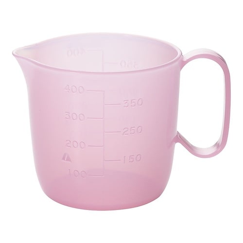 カラス口で、注ぎやすい形状になっています。目盛は、文字が大きく両側に付いているので、見やすくなっています。取っ手も角の取れた形状になっているので、長く持っても疲れません。 |