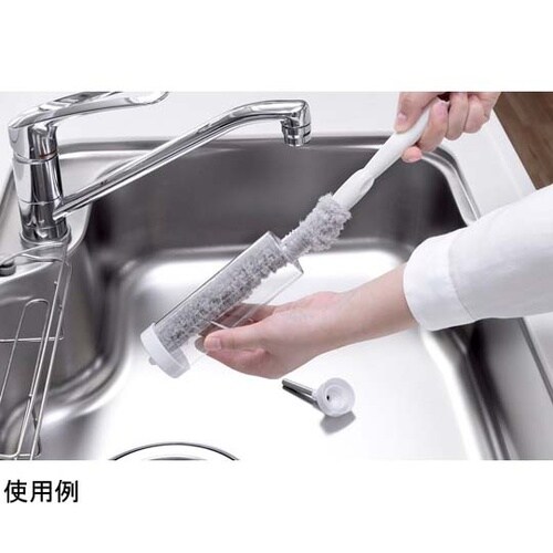 繊維で洗うので、ステンレスやプラスチックを傷つけません。本体は洗う所に合わせて手で曲げて使えます。水だけでも汚れを落とす繊維で、底のスミまできれいに洗えます。細かい箇所も洗えるブラシ付きです。 |