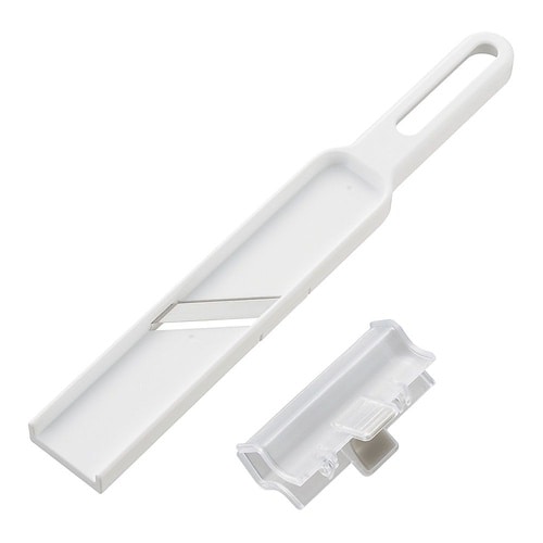 長ネギのななめ薄切りがササっとたくさんできるスライサーができました。角度を変えてななめ切りから小口切りまで自由自在!調理の下ごしらえから仕上げまで、らくらく便利に使えるグッズです。 |