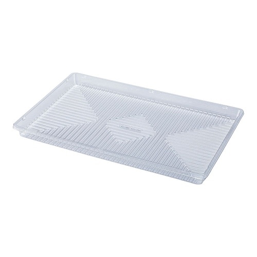 木目調 折りたたみコンテナー専用トレイです。折りたたみコンテナー内にセットして、水分や汚れを受け止めるトレイです。真空成型の消耗品なので容易に交換ができ、清潔な売り場を維持できます。 |