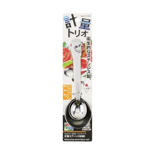 衛生的なステンレス製。大さじ、小さじ、小さじ1/2。食器洗い乾燥機対応。 |