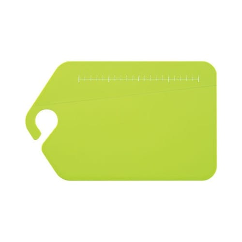 折り目を曲げて、切った食材をこぼさずお鍋に入れることのできるまな板。指を差し込む部分はフック形状になっていますので、使わない時にはフックに掛けて収納できます。