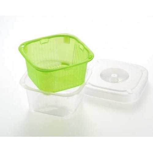 ザルとボウルを使って食材を洗い、水を切ります。フタを閉めてレンジで簡単蒸し料理ができちゃいます。 |