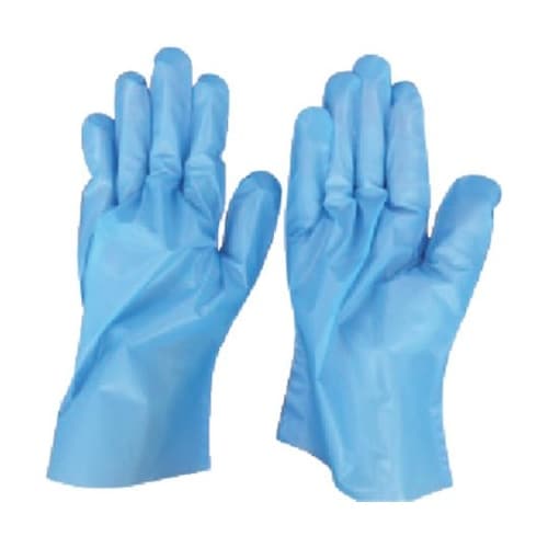 外エンボス加工により、すべり止め効果があります。異物混入対策のブルーカラーです。エコノミータイプなので頻繁に取り替える作業に適しています。 |