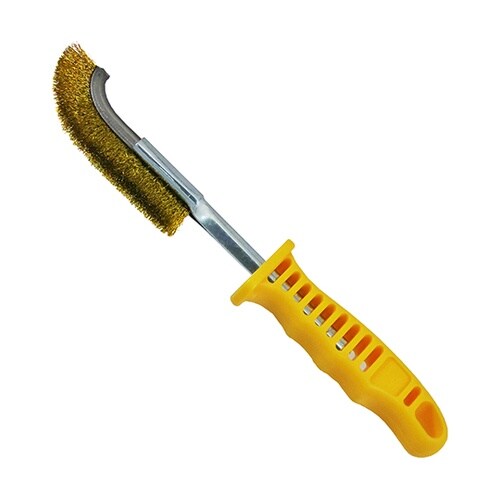 柔らかい素材のバリ取りに。握りやすいグリップ付きワイヤーブラシ(チャネンルブラシ)。力を掛けやすい先曲りブラシ。 |