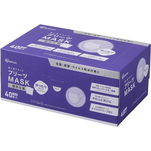 アイリスオーヤマ プリーツマスク ゆったり大きめ 40枚入 PK−NV40LL PK−NV40LL 1箱 A069-2510