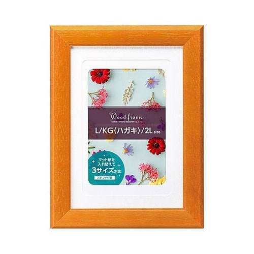3サイズの写真に対応可能な3WAY木製カラーフレーム2Lサイズの写真の他に、付属のマット紙を使えばLサイズやKG(ハガキ)サイズにも対応します。 |