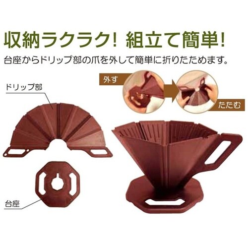 収納ラクラク!組み立て簡単!折畳んでコンパクト収納台座からドリップ部の爪を外して簡単に折りたためます。 |