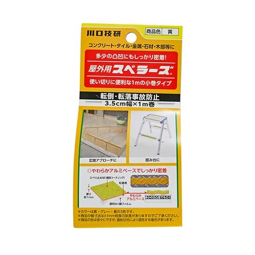 転倒・転落・スリップ事故を防止する屋外用スベリ止めテープです。雨で濡れる場所やすべりやすい材質の面には特に有効です。やわらかアルミベースだから凸凹面にそって密着。 |
