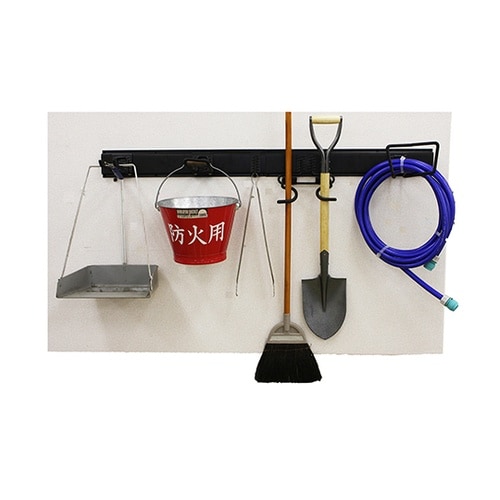 ワイルドレールフック用レール。ビスの効く場所に取付けてください.屋外倉庫、ガレージで大きなものを掛けるのに中空壁、石膏ボード、土壁、しっくい等のもろい壁ビスのきかない場所には取り付けできません。 |