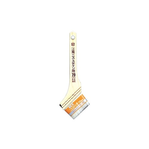 PC上級ニス・ステイン用一般的な塗装用として使用していただき、納得できるハケです。獣毛と化繊との混毛により、含みが良く、塗りやすく作業性がよいハケです。手によくなじみ、使いやすい白木のハンドル。