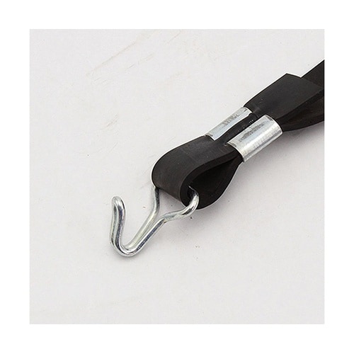 両端にフック金具の付いたゴムバンド。シート止や荷物の固定等にトラック等のシート止め用に。ゴムの油分の浸透により色移りする場合があります。油の付く場所では使用を避けてください。 |