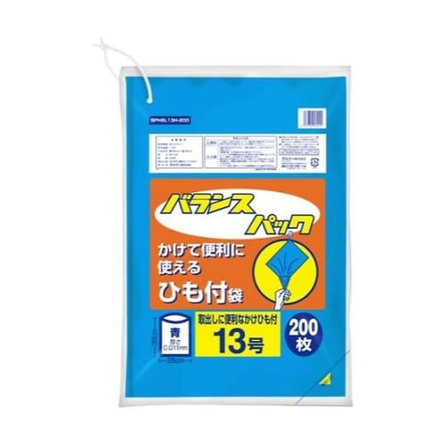 掛けて使えるひも付きタイプの規格袋です。青色ポリ袋なので食品加工現場の異物混入対策に適しています。 |